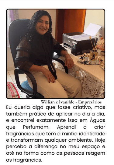 Eu vou te entregar agora um caminho leve e certeiro, nada complicado, mas que já foi colocado em prática por mais de 700 alunas(os) que queriam começar a criar seus próprios perfumes e outros produtos perfumados em casa, mesmo sem experiência nenhuma, sem precisar gastar com equipamentos caros e ainda com grandes chances de vender sem nem precisar se expor.